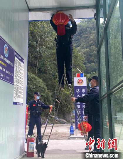 春節(jié)到來(lái),民警把達(dá)國(guó)大橋檢查點(diǎn)裝扮一新。受訪(fǎng)者供圖