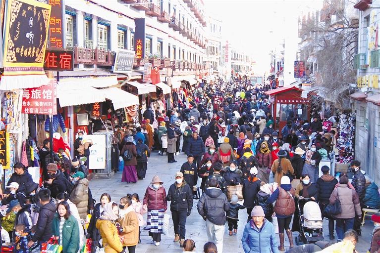 沖賽康市場(chǎng)、八廓商城、拉薩市區(qū)各大小超市……熱鬧非凡、人頭攢動(dòng),處處都是為了采購藏歷新年年貨樂此不疲的居民群眾,耳邊盡是熟悉的吆喝聲,到處都是歡樂與喜慶。