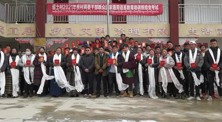打造“領(lǐng)頭雁”,輻射帶動群眾共同進步?!皻q歲鬧元宵,轟天鑼鼓敲”,進一步讓“學(xué)習(xí)”之風(fēng)在基層助力“好學(xué)”之苗生根發(fā)芽,工作隊在元宵節(jié)開展“2021年度國家通用語言教育培訓(xùn)結(jié)業(yè)典禮”,從全村116名參訓(xùn)人員中評選出“學(xué)習(xí)之星”1名,“進步之星”2名進行表揚表彰,樹立學(xué)習(xí)榜樣,激勵對標對表,努力學(xué)習(xí)國家通用語言文字,有利于促進各民族交往交流交融。