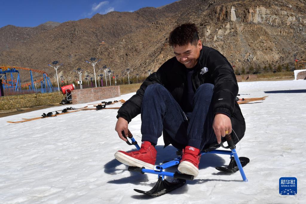 近日,西藏拉薩郊區(qū)一游樂場(chǎng)開設(shè)冰雪運(yùn)動(dòng)體驗(yàn)場(chǎng),讓更多人感受冰雪的樂趣。