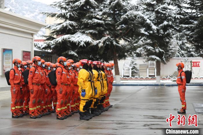 圖為消防員集結出發(fā)。索朗旺久 攝