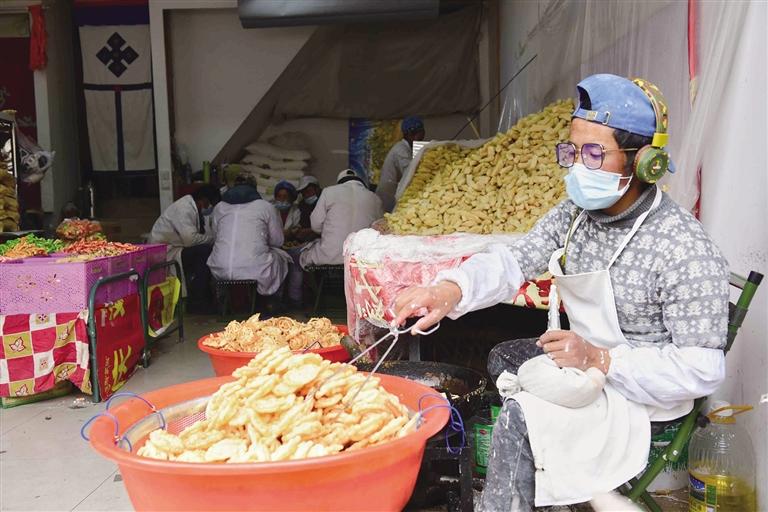 千門萬戶曈曈日,總把新桃換舊符。隨著各民族交往交流交融,藏文對(duì)聯(lián)也逐漸成為藏歷新年年貨市場中不可缺少的“成員”,寄托了人們對(duì)來年美好生活的殷切期盼。走進(jìn)沖賽康市場,記者看到很多攤位都擺放著各式各樣紅色藏式對(duì)聯(lián),內(nèi)容主要蘊(yùn)含平安、健康、長壽等吉祥的寓意,不時(shí)還有市民前來詢價(jià)選購。此外,每年藏歷新年前,不少書法家還會(huì)將滿載祝福的對(duì)聯(lián)寫好后送給市民,把濃濃的年味和對(duì)藏歷新年的祝福送到大家手中。