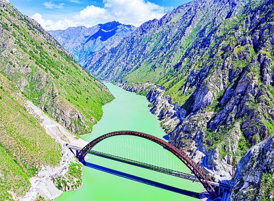 復(fù)興號列車行駛在川藏鐵路拉林段藏木特大橋。新華社發(fā)