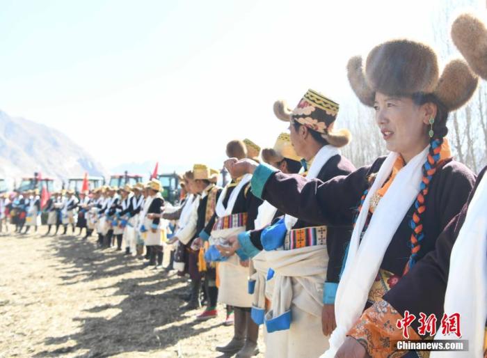 3月16日,西藏拉薩迎來一年一度盛大的傳統(tǒng)春耕儀式。按照藏歷傳統(tǒng),當?shù)卮迕裆碇?jié)日盛裝,家家戶戶端著自家的“切瑪”(象征五谷豐登)聚集在田頭,互敬青稞酒,開始撒種,祈福一年的豐收。圖為西藏拉薩市曲水縣茶巴朗村,村民身著盛裝舉行傳統(tǒng)春耕儀式。 中新社記者 貢嘎來松 攝