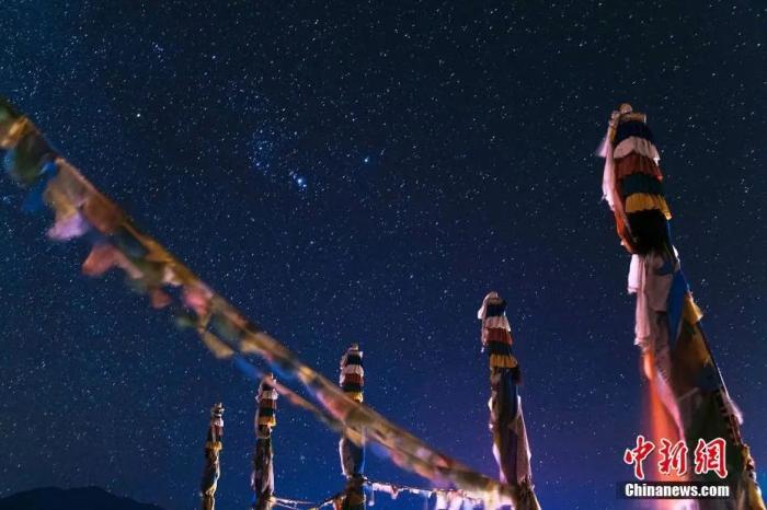 西藏江孜,星空與經(jīng)幡柱。 金梓江 攝