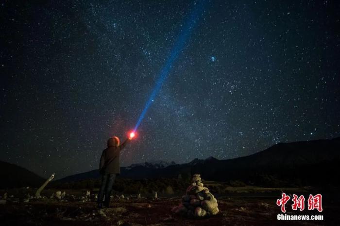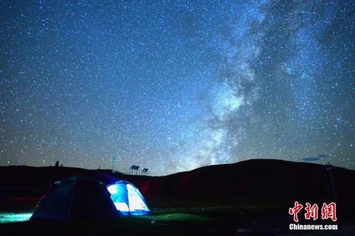 西藏,星空下露營。中新社記者 江飛波 攝