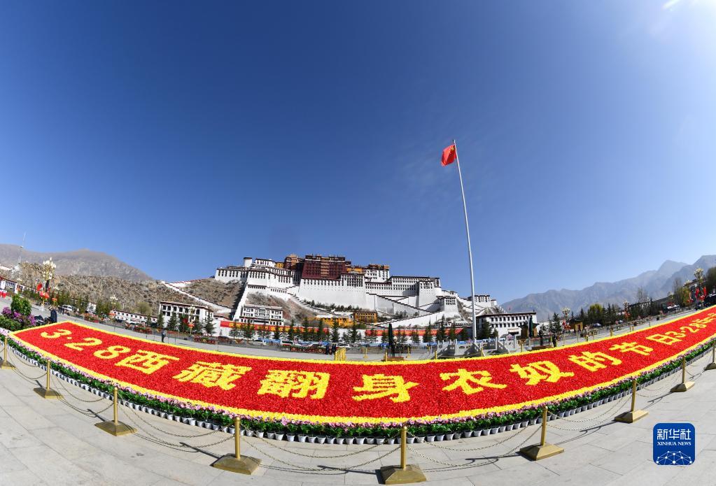 63年后的今天,春風(fēng)和煦,陽光明媚。上午9時40分,在《翻身農(nóng)奴把歌唱》的伴奏下,西藏各族各界群眾代表聚集在拉薩布達(dá)拉宮廣場。蔚藍(lán)的天空下,和平鴿展翅翱翔。