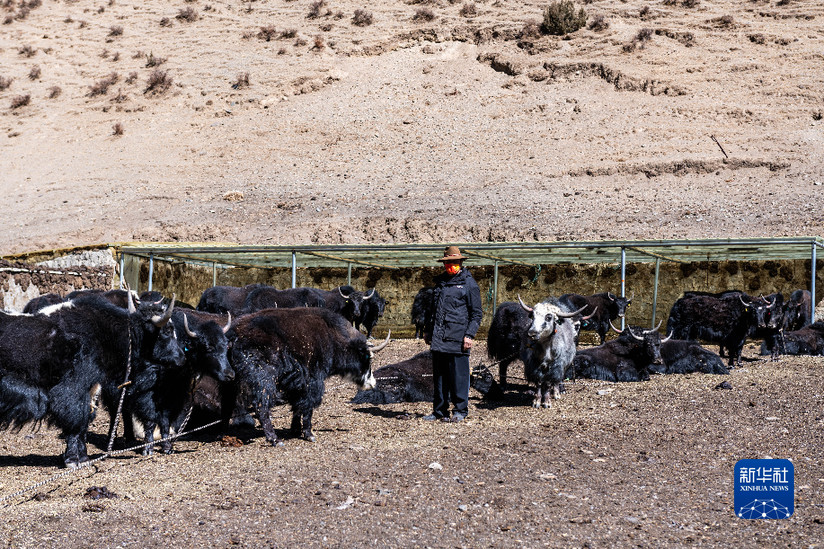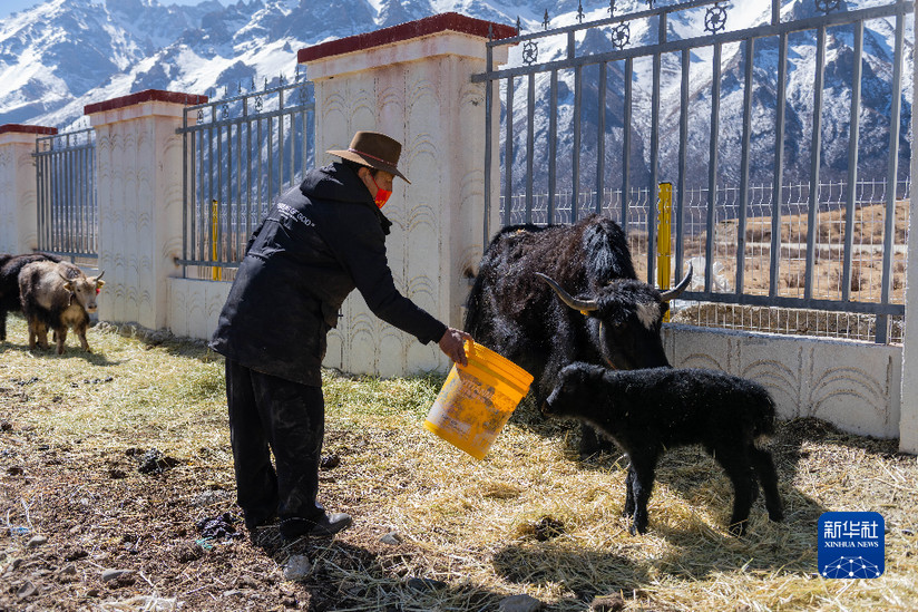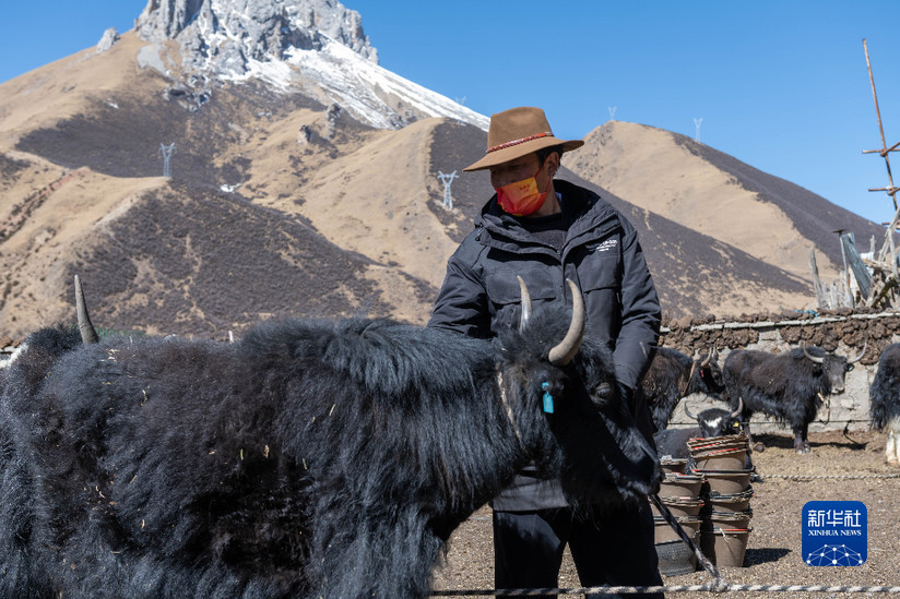 貢培在西藏娘亞牦牛養(yǎng)殖產(chǎn)業(yè)發(fā)展有限責(zé)任公司的標(biāo)準化養(yǎng)殖場上工作(3月30日攝)。新華社記者 周荻瀟 攝