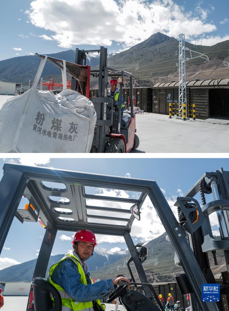 拼版照片:上圖為3月29日,邊巴在林芝站貨場搬運(yùn)貨物;下圖為邊巴在駕駛叉車。朵當(dāng)村的村民邊巴跟人合伙開了一家物流公司,將抵達(dá)火車站的飼料、日用百貨、建筑材料等運(yùn)往林芝各地,他每天都會通過微信召集周邊的年輕人來貨場干活。邊巴說,他對未來充滿希望,拉林鐵路貨運(yùn)量不斷增加,自己和村民的收入會越來越好。新華社記者 洛卓嘉措 攝