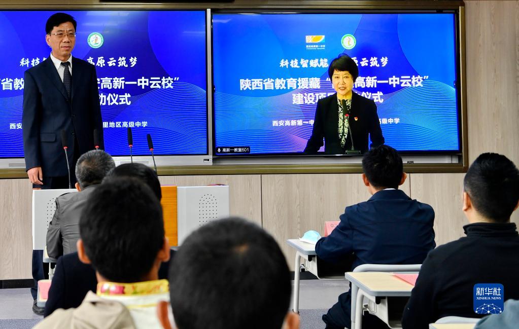 當(dāng)日,陜西省教育援藏“云校”建設(shè)項(xiàng)目正式啟動(dòng)。陜西省西安高新第一中學(xué)和西藏拉薩阿里地區(qū)高級(jí)中學(xué)結(jié)成“對(duì)子”,借助5G網(wǎng)絡(luò)開(kāi)展教學(xué)教研互動(dòng),助力提升教育水平。