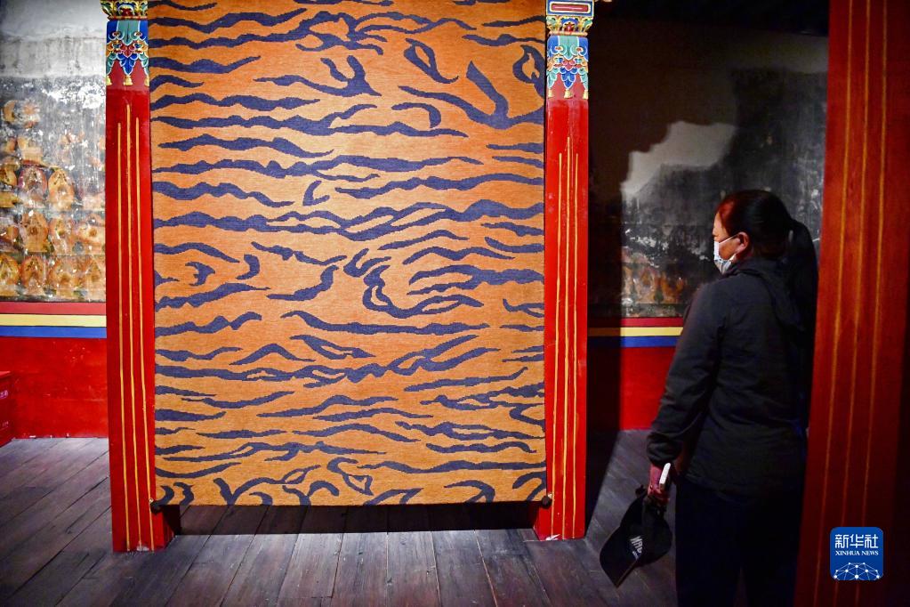 4月9日,觀眾在展廳內(nèi)欣賞“虎毯”。新華社記者 張汝鋒 攝