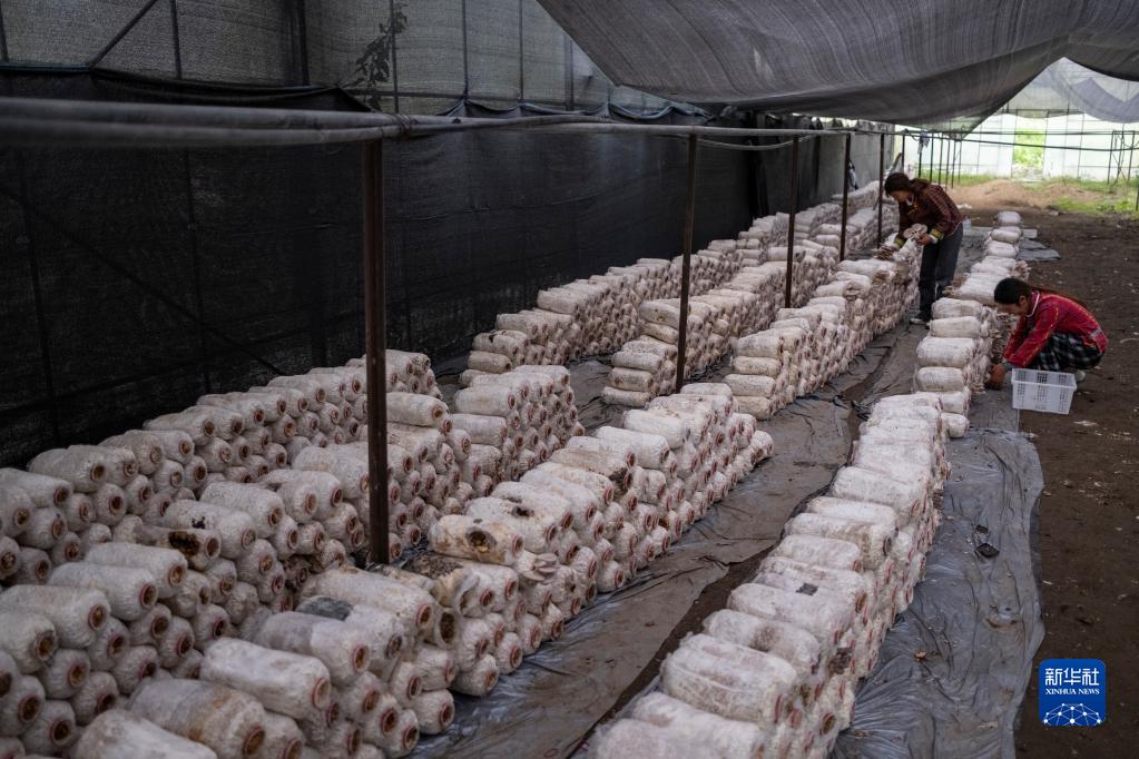 姐妹倆種植的平菇(4月14日攝)。新華社記者 孫非 攝
