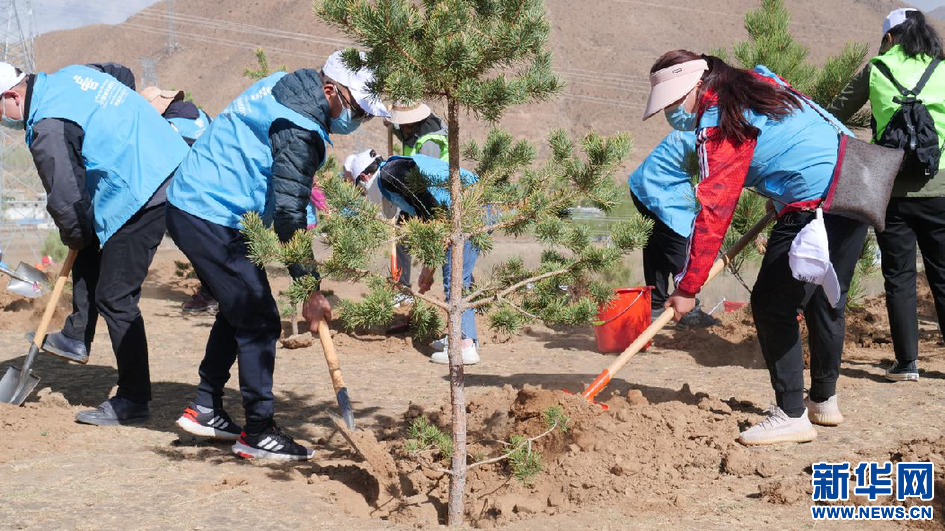 圖為植樹活動現(xiàn)場(4月16日攝)。新華網(wǎng)發(fā) 貢桑央吉(實(shí)習(xí)生)攝