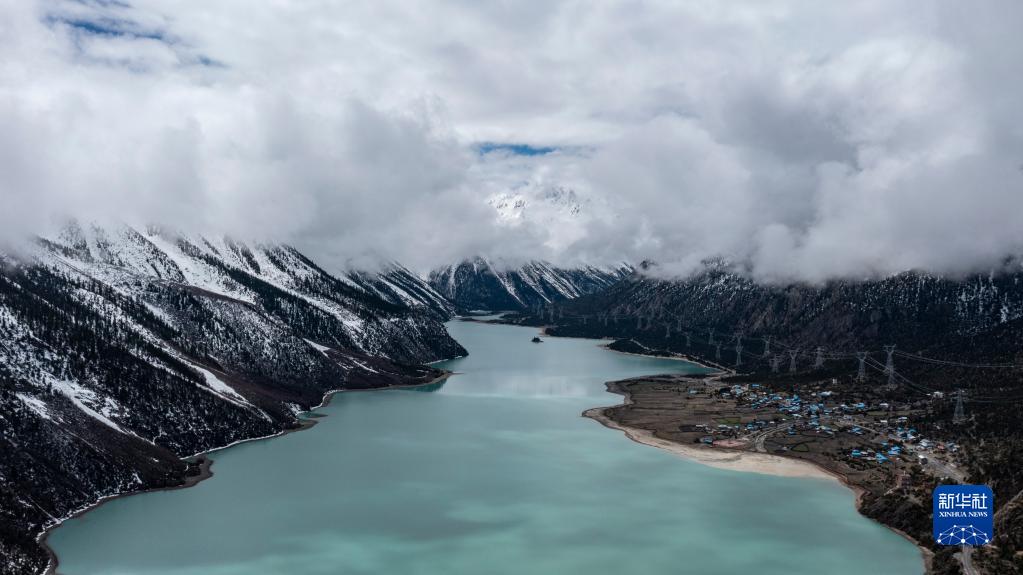 這是無人機(jī)拍攝的然烏湖(4月24日攝)。新華社記者 孫非 攝