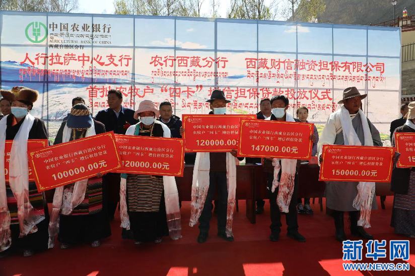 26日,由西藏財信融資擔保有限公司與農(nóng)行西藏分行聯(lián)合推出的農(nóng)牧戶“四卡”增信擔保貸款首批發(fā)放儀式,在山南市洛扎縣洛扎鎮(zhèn)舉行?,F(xiàn)場9名受益群眾代表獲“四卡”增信擔保貸款共計111萬元。