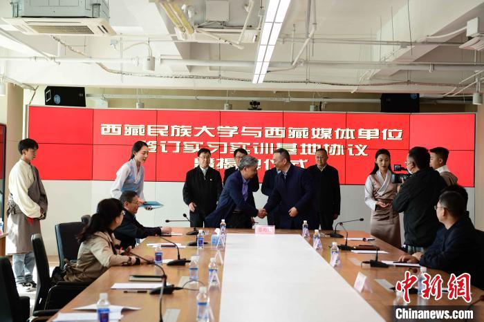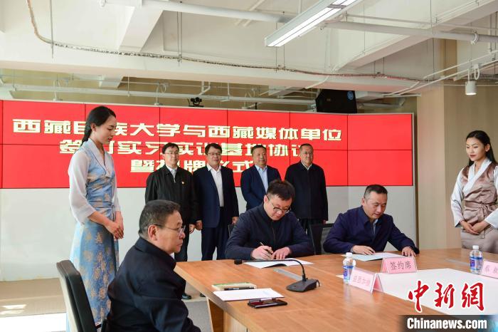 5月27日,西藏民族大學與西藏日報社、西藏廣播電視臺、人民網西藏頻道、中國新聞社西藏分社、中國西藏網西藏記者站等媒體單位簽訂實習實訓基地協(xié)議暨揭牌儀式在西藏日報舉行。