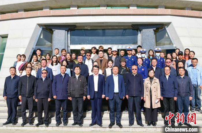 圖為簽約儀式上媒體單位負責人跟西藏民族大學的實習生合影?!∝暩聛硭?攝