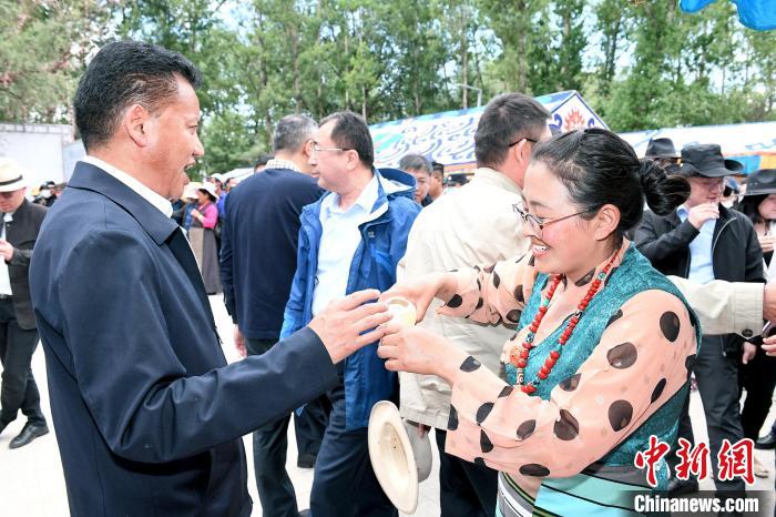 6月10日下午,西藏日喀則貢覺(jué)林卡公園內(nèi),人們載歌載舞,洋溢著節(jié)日的氛圍。為了慶祝2022年文化和自然遺產(chǎn)日,由日喀則桑珠孜區(qū)人民政府主辦,桑珠孜區(qū)文化和旅游局、桑珠孜區(qū)商務(wù)局承辦的2022第二屆“桑珠孜有禮”·非遺藝術(shù)節(jié)暨桑珠孜區(qū)特色產(chǎn)品展示展銷(xiāo)活動(dòng)宣告正式啟動(dòng)。