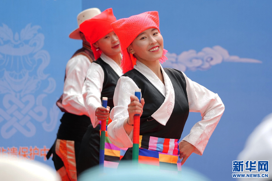 6月11日,西藏山南市貢嘎縣吉瓊村文藝演出隊(duì)在表演舞蹈《魯古百瓊》。新華網(wǎng) 旦增努布攝