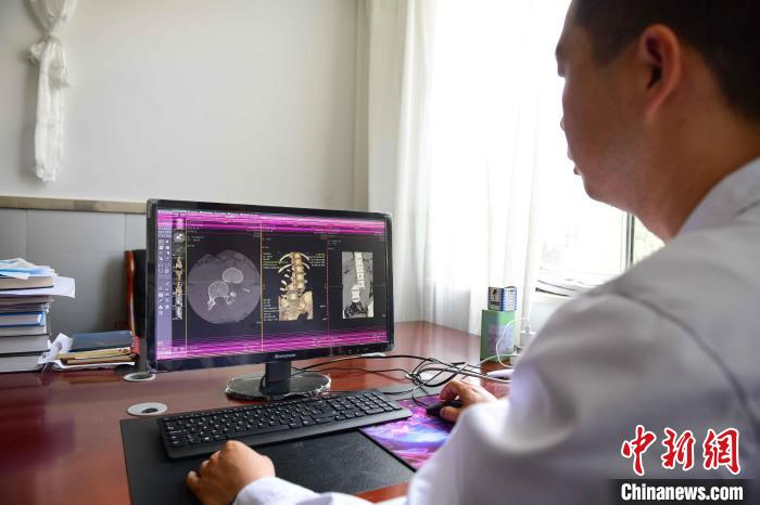 圖為何蔚副主任醫(yī)師仔細(xì)翻閱患者CT片子?!∝暩聛硭?攝