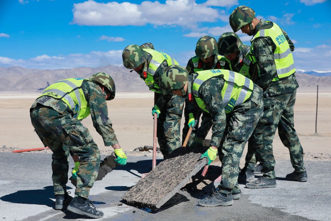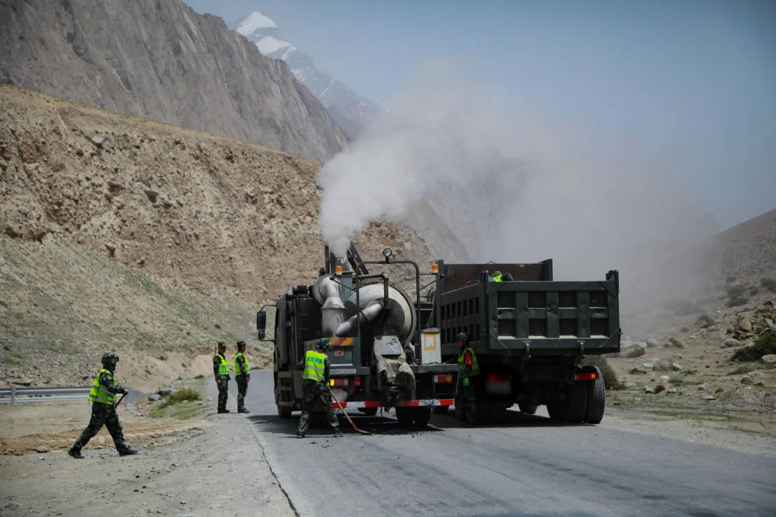 對(duì)此,該支隊(duì)充分利用新疆當(dāng)季天氣較好時(shí)機(jī),在新藏公路新疆段600多公里道路進(jìn)行病害集中治理,官兵們分別在庫(kù)地達(dá)坂、麻扎達(dá)坂、黑卡子達(dá)坂、奇臺(tái)達(dá)坂等多個(gè)病害點(diǎn)展開(kāi)工作。