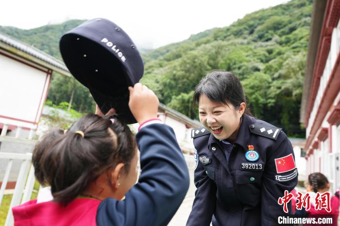 圖為亞東出入境邊防檢查站民警楊琳與龐達(dá)村雙語幼兒園小朋友一起玩游戲。李錦輝 攝