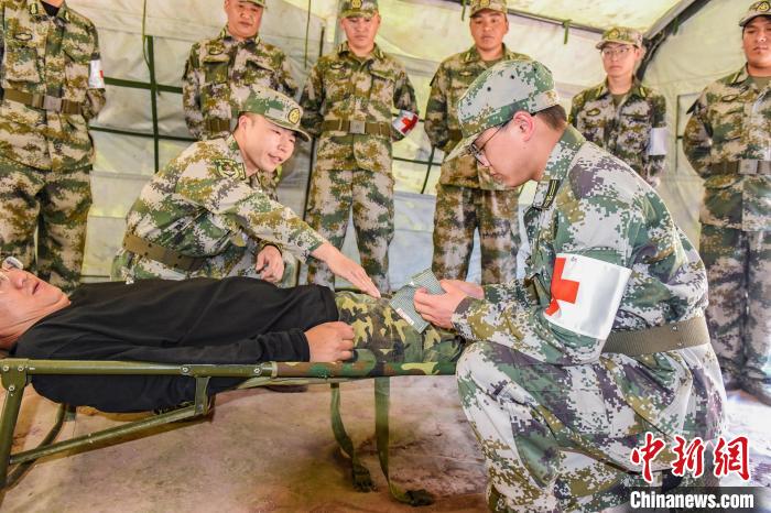 圖為陸軍第九五五醫(yī)院教員為民兵教授急救相關(guān)知識(shí)。彭毅 攝