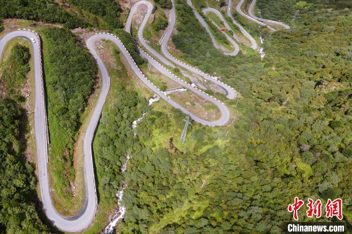 圖為西藏錯那縣勒布溝盤山公路與電力設(shè)施。江飛波 攝