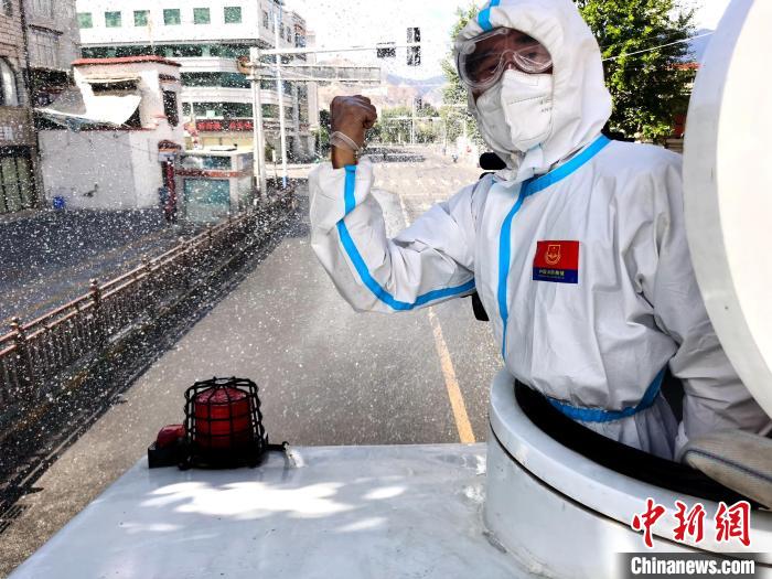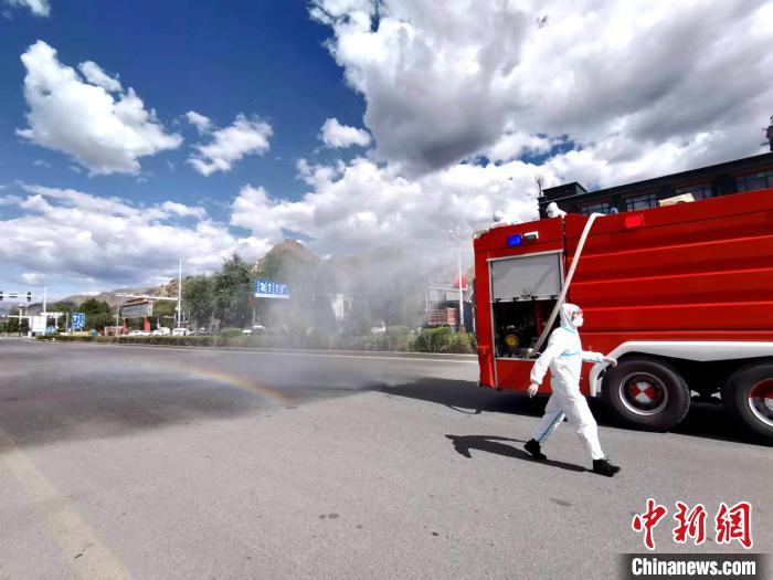 圖為拉薩消防指戰(zhàn)員在主城區(qū)進行消殺?!±_市消防救援支隊 攝
