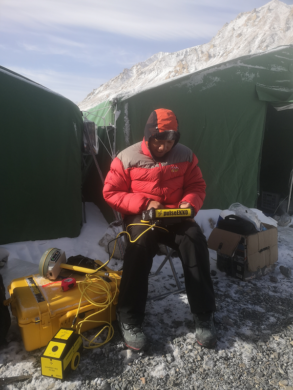 楊威在珠峰大本營檢查調(diào)試雷達設(shè)備