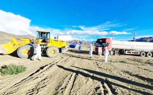 9月5日,日喀則市一輛前往方艙醫(yī)院運(yùn)輸液化氣的半掛車陷在醫(yī)院門口沙坑中無法駛出,嚴(yán)重影響方艙醫(yī)院的物資保障,了解到有關(guān)情況后,為助力疫情防控工作,中心立即伸出援手,成立小分隊(duì)趕赴現(xiàn)場開展救援工作。