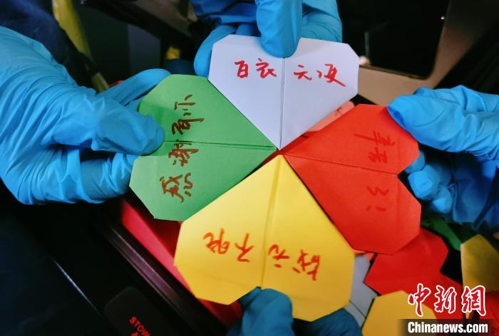乘務(wù)組向每位醫(yī)療人員送上小國(guó)旗,用“你我攜手”“共同抗疫”“缺氧不缺精神”“海拔高境界更高”等標(biāo)語表達(dá)對(duì)醫(yī)療隊(duì)員們的崇高敬意。在國(guó)慶即將到來之際,醫(yī)療隊(duì)隊(duì)員們紛紛寫下了對(duì)祖國(guó)的祝福。
