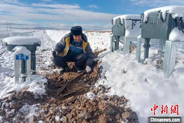 8:15,作業(yè)命令下達(dá),梁海峰在做好防護(hù)設(shè)置后,開始對唐古拉南站的信號機(jī)、軌道電路、道岔等信號設(shè)備的箱盒進(jìn)行逐一排查,確保無雪水進(jìn)入,并對5組道岔的融雪設(shè)備進(jìn)行檢查,保證道岔能夠平穩(wěn)轉(zhuǎn)換。