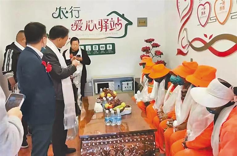 農(nóng)行日喀則分行在臨街網(wǎng)點(diǎn)設(shè)立“農(nóng)情暖域——愛(ài)心驛站”,為戶(hù)外勞動(dòng)者提供便民服務(wù)。