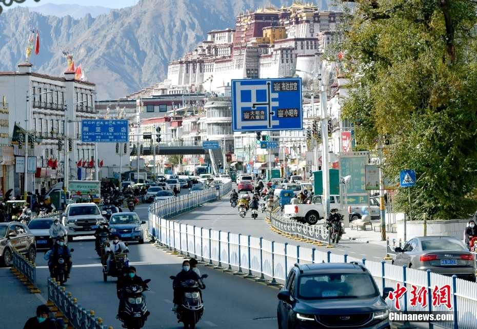 11月17日,拉薩市北京東路車流人流漸多。近日,在拉薩八廓街道、吉日街道、吉崩崗街道等主城區(qū)及市區(qū)主要路段,車流量、人流量逐步恢復。隨著拉薩市新冠肺炎疫情防控形勢持續(xù)向好,各行各業(yè)有序復工復產(chǎn),民眾生活逐步正常,街頭巷尾的“煙火氣”漸濃。 中新社記者 李林 攝