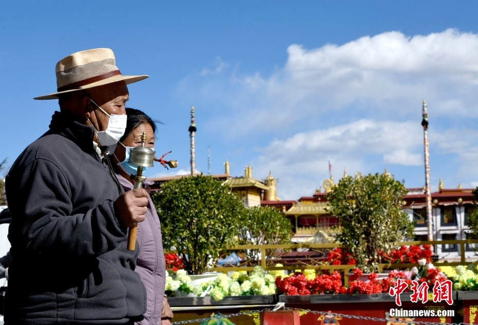11月17日,信眾在八廓街內(nèi)轉(zhuǎn)經(jīng)。中新社記者 李林 攝