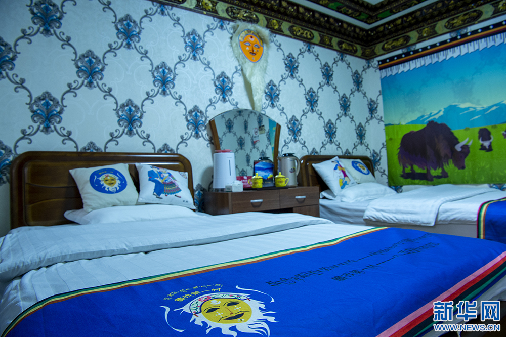 圖為扎西曲登社區(qū)一家民宿的藏戲主題客房(12月9日攝)。新華網(wǎng) 旦增努布 攝