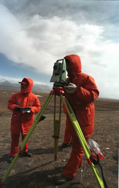 2001年4月,鐵道部第一設計院的勘測人員在海拔近5000米的四道梁加緊進行青藏鐵路的勘測工作。在國務院批準修建青藏鐵路后,鐵道部第一設計院的上千名勘測人員克服惡劣的自然條件,為青藏鐵路早日開工夜以繼日地工作。