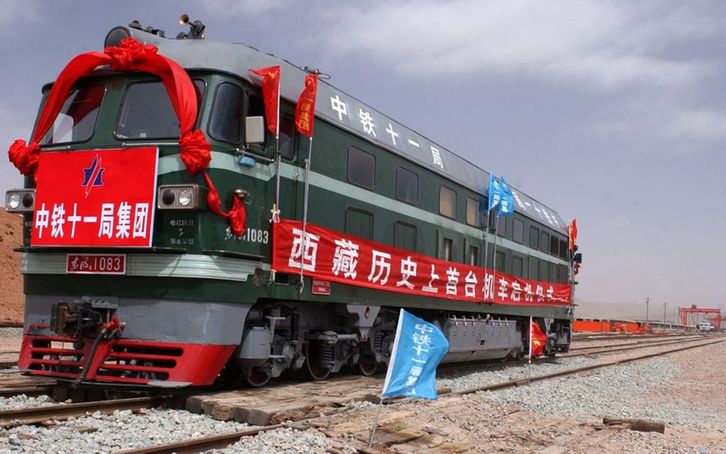 2004年3月23日,在海拔4704米的青藏鐵路海拔最高鋪架基地——西藏安多鋪架基地上,中鐵十一局1083號東風4型內(nèi)燃機車向雪域高原緩緩駛來。這標志著西藏歷史上出現(xiàn)了第一臺鐵路機車。