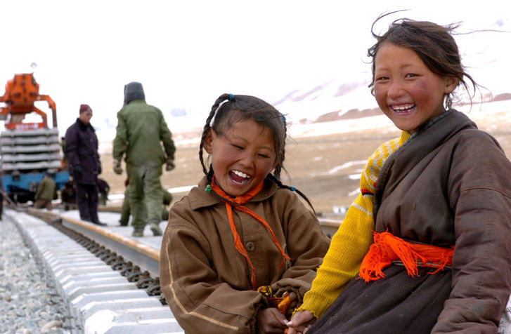 青藏鐵路的建設工地成為了附近居民最大的關注點,老鄉(xiāng)們來到工地東瞅瞅、西瞧瞧,好奇地摸摸鐵軌,或者甚至拉著工人們問問這、問問那——盡管很多時候,由于語言不通的緣故,他們并不能夠了解對方在說什么。在故鄉(xiāng)人的臉上,我看到了對未來變化的憧憬,以及對鐵路建成越來越急迫的渴望。