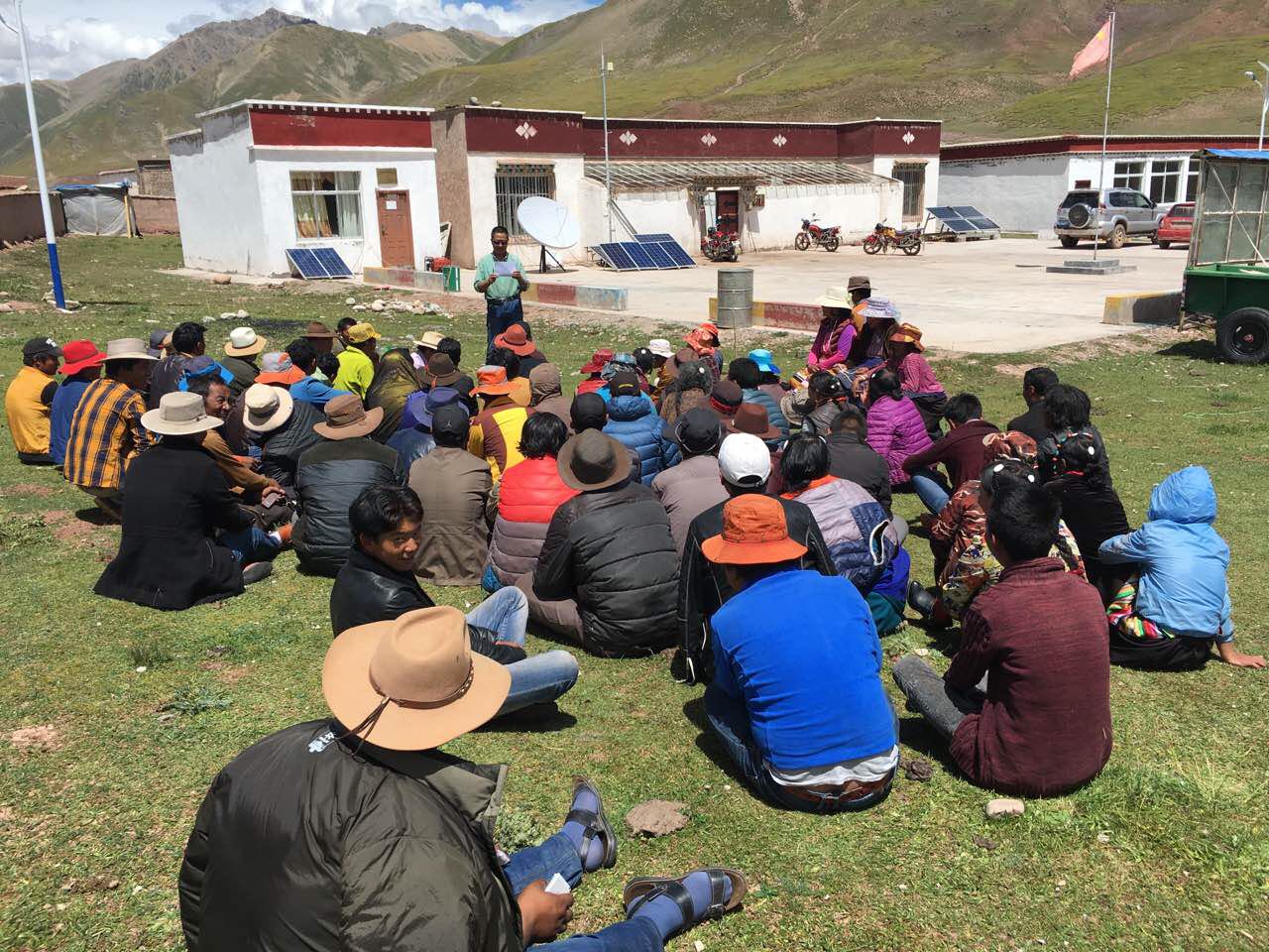 圖為中國人壽西藏分公司駐村工作隊員向村民宣講最新的涉農(nóng)、涉牧保險知識。