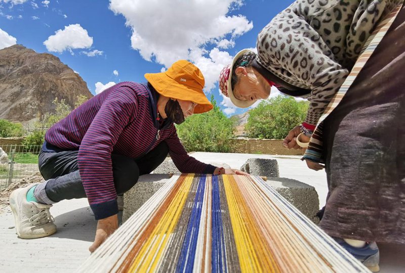 除了賣產品,次仁曲珍也心系十里八村的其他群眾。“我們的原材料(羊毛、羊絨),都是從周邊村子收購的。其實,以前很多老百姓家的羊毛要么自用,要么送人,幾乎很少出售?,F(xiàn)在他們可以送到我這里,市場價7元—10元/斤。”古老的紡織技藝與珍稀羊毛(絨)材質融合,是每一位阿佳用心編織的直抵人們內心深處的柔軟,更是她們的五彩夢想。