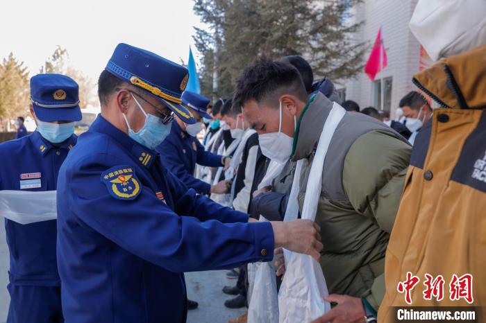為新入營(yíng)消防員獻(xiàn)上迎接哈達(dá)?!『罱? 攝