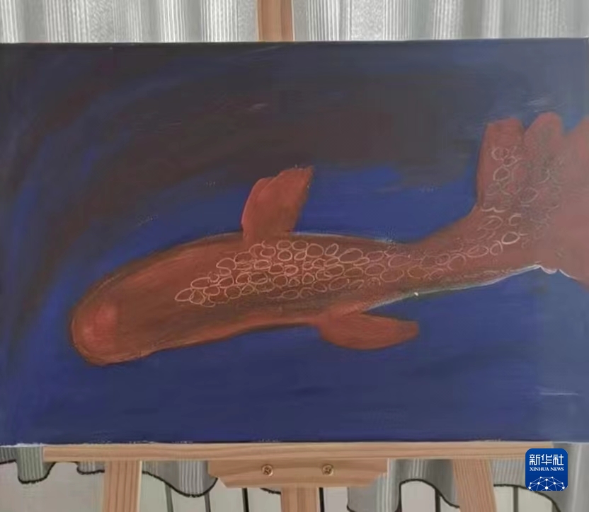娘扎多杰說(shuō):“古入老師耐心地告訴我‘如魚(yú)得水’‘年年有余’等典故,我很喜歡魚(yú),就畫(huà)了一條在海里游泳的金色的魚(yú),并給它取名‘年年有余’,來(lái)迎接新的一年?!?/p>