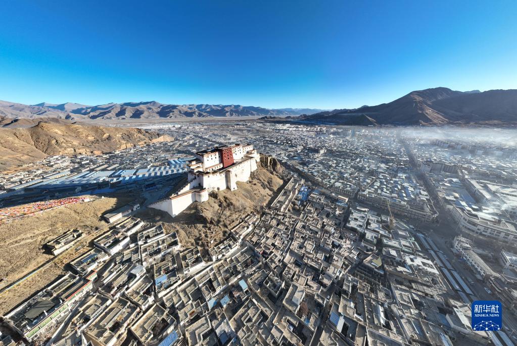 1月24日拍攝的日喀則市的清晨(無人機(jī)照片)。新華社記者 晉美多吉 攝