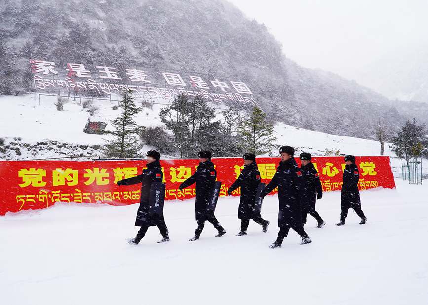 “每年的春節(jié)是玉麥降雪量最大的時(shí)候,積雪覆蓋下的巡邏道,白茫茫的一片,看不出任何區(qū)別。積雪下面可能是深坑,也可能是懸坎。如果是新同志走在前面,那就比較危險(xiǎn)……”王磊表示,玉麥鄉(xiāng)的一草一木對(duì)他來說簡直再熟悉不過,他知道下雪期間巡邏哪些地方能走,哪些地方不能走。