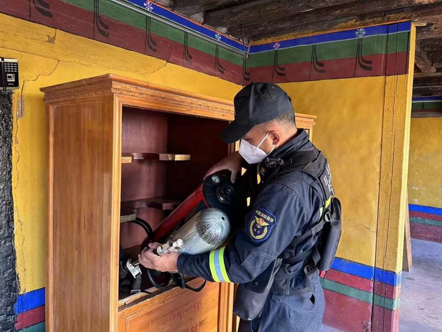 圖為檢查消防設(shè)備。圖片由布達(dá)拉宮消防救援大隊(duì)提供