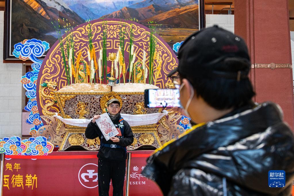 藏歷新年期間,西藏博物館依據(jù)當?shù)靥厣晁祝_展豐富多彩的活動,吸引游客和市民前來體驗。
