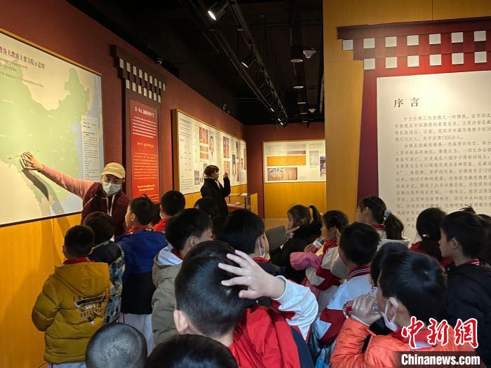 圖為活動(dòng)當(dāng)天西藏文化博物館的志愿者們帶領(lǐng)小朋友參觀館內(nèi)展覽。李晗雪 攝