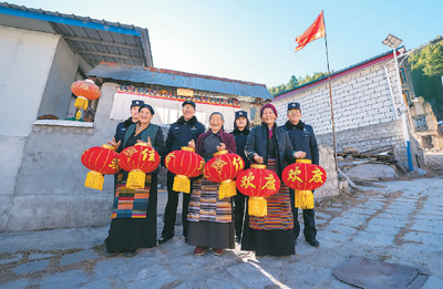 圖為西藏亞?wèn)|出入境邊防檢查站移民管理警察看望慰問(wèn)“三個(gè)老阿媽”。李錦輝攝